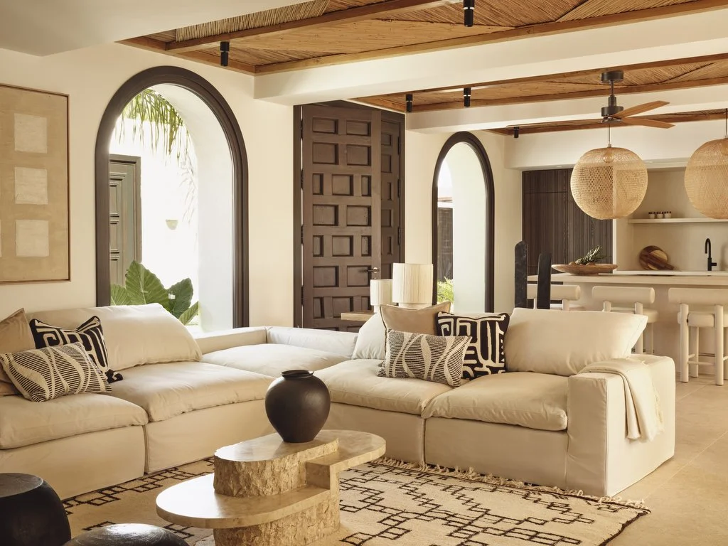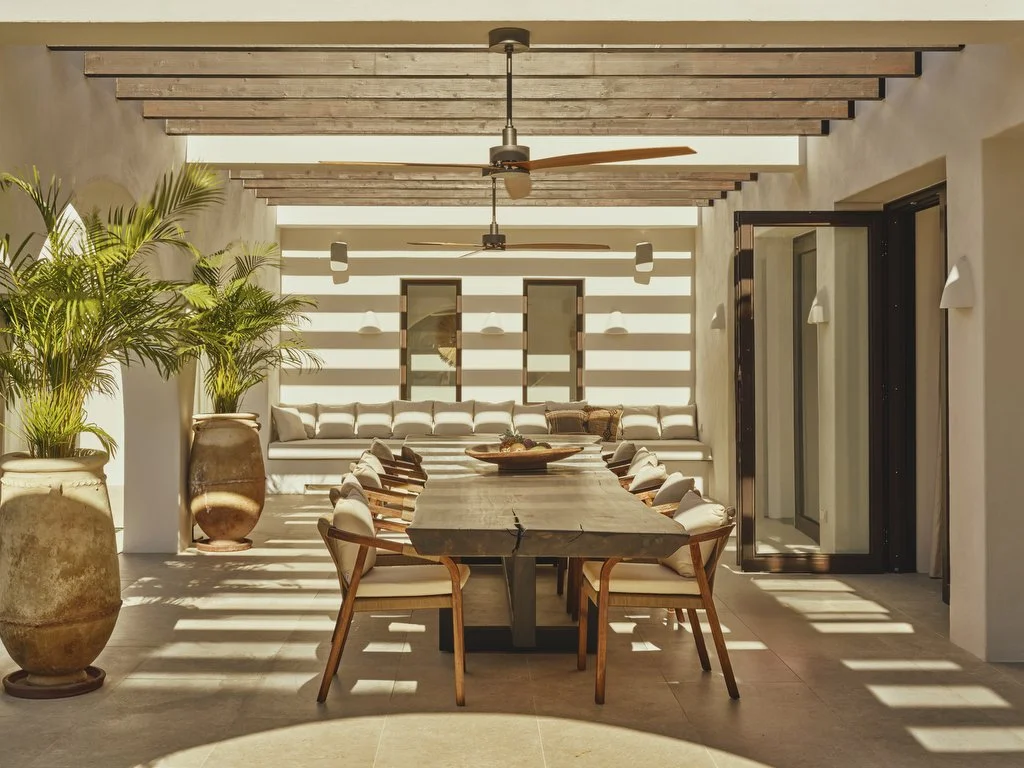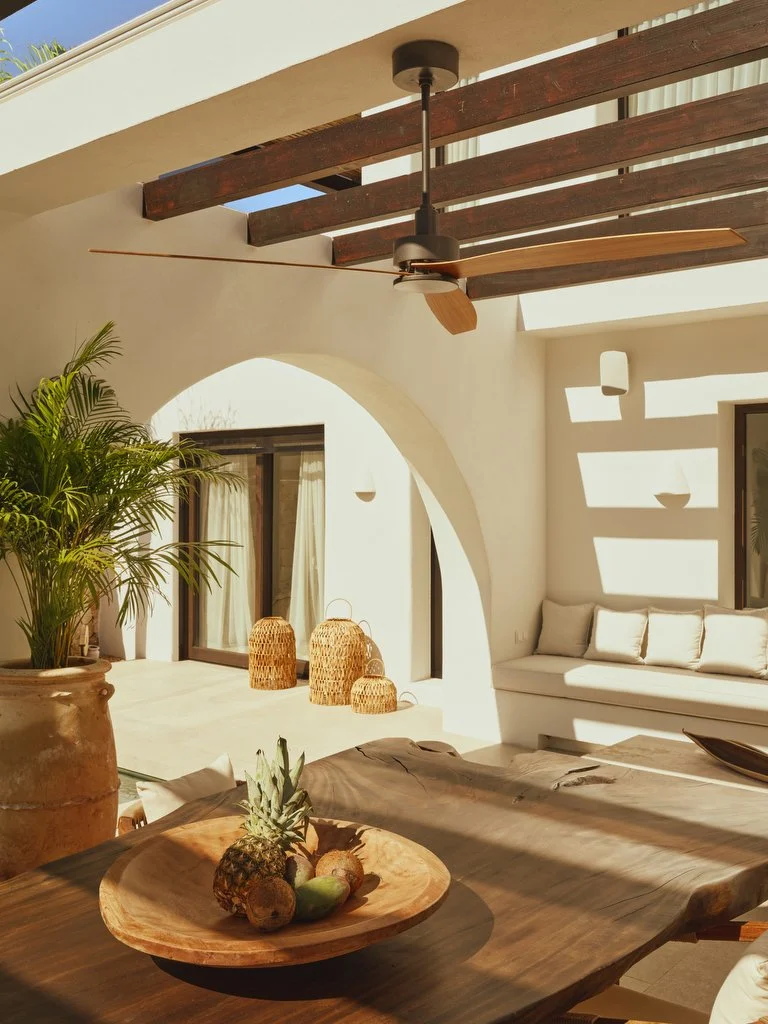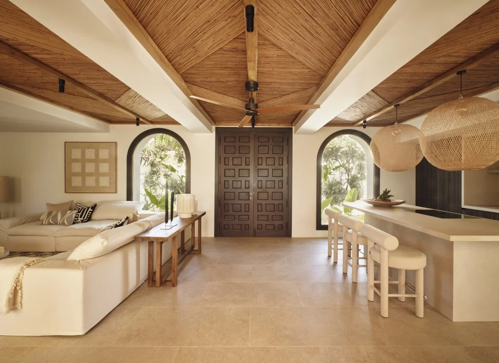 Interior design project for a special villa in Marbella. Every element was conceived and selected down to the last detail: a warm palette, noble textures and refined volumes that seamlessly connect interior and exterior.